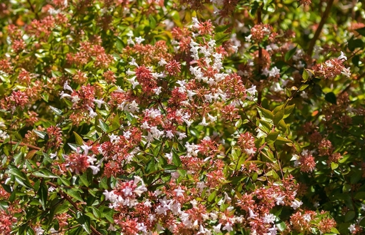 Commonly called Glossy Abelia, this is a lovely evergreen shrubย with an extended flowering period. The bush gets covered in pretty pink and white flowers. It is a medium growing shrub, reaching about 2m tall and 2m wide. It needs a position in full sun to part shade and well draining soils. It needs regular watering to keep the soil moist for optimum growth. It is great to use as a hedge or screening plant.