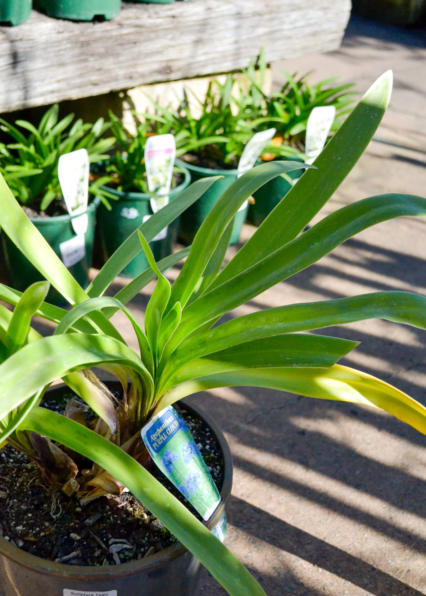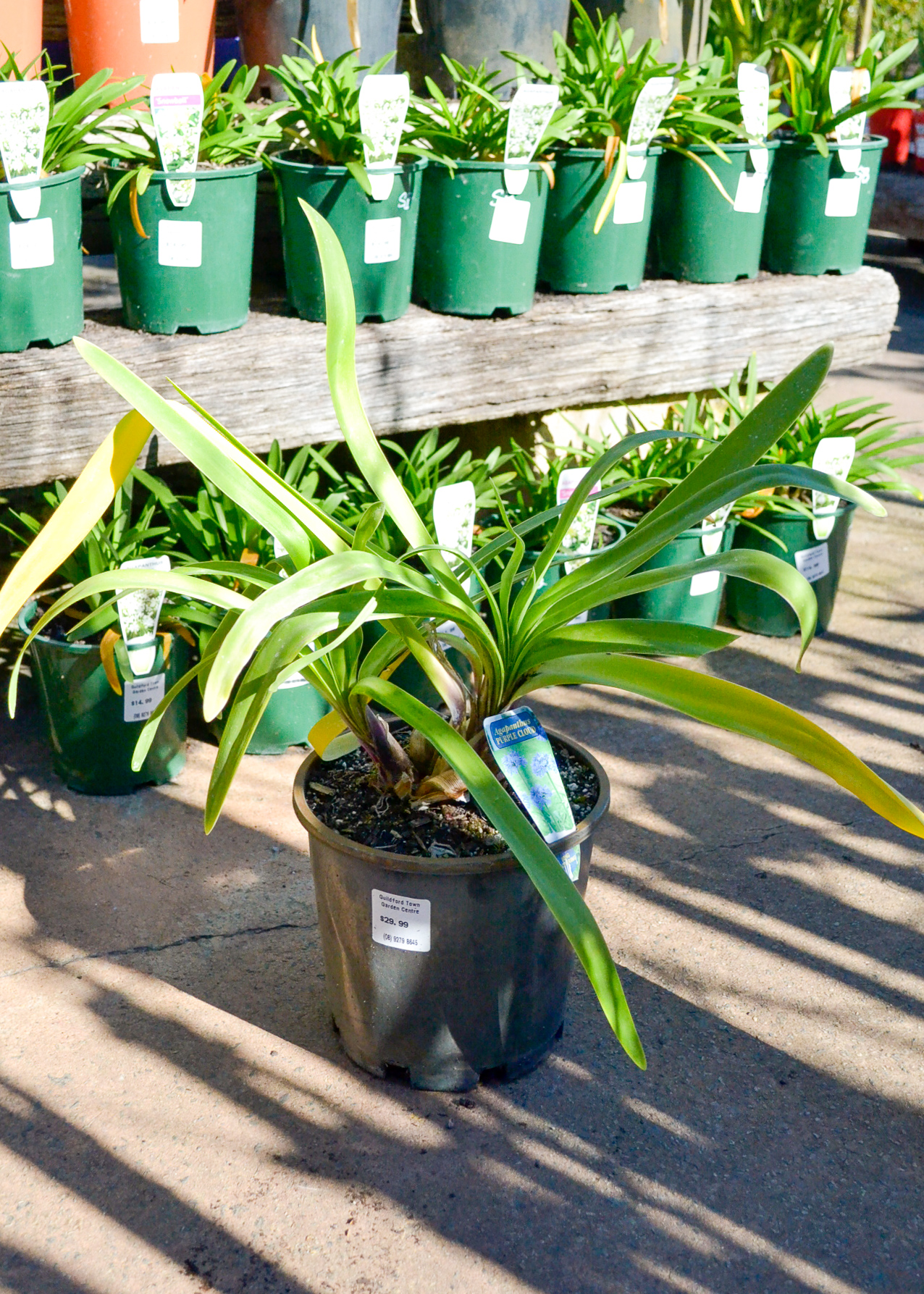 Agapanthus are excellent hardy clumping plants, with thick, strappy dark green foliage, and tall flower spikes. ‘Purple Cloud’ has tall purple flower spikes that will grow up to 2m tall. The clump of leaves can be 1m H x 1m W.