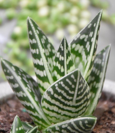 FOLIAGE: Thick, triangular, deep green with white stripes