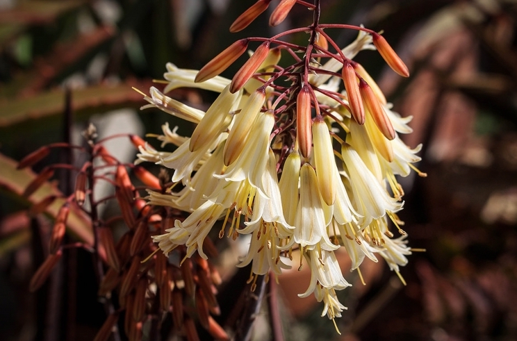 A small aloe with spikes of cream bell shaped flowers throughout the year. It has thick, dark green leaves with lovely red margins to the leaves in bright light and grows to 20cm tall and 20cm wide. It is a tough plant able to withstand many climative extremes but it does need protection from frost. In summer it may need supplementary watering and it will show when it needs watering as its leaves will being to shrivel. It looks great in succulent gardens, Mediterranean gardens and grows well in pots and containers. It needs be grown in well drained soils in a part shade position.