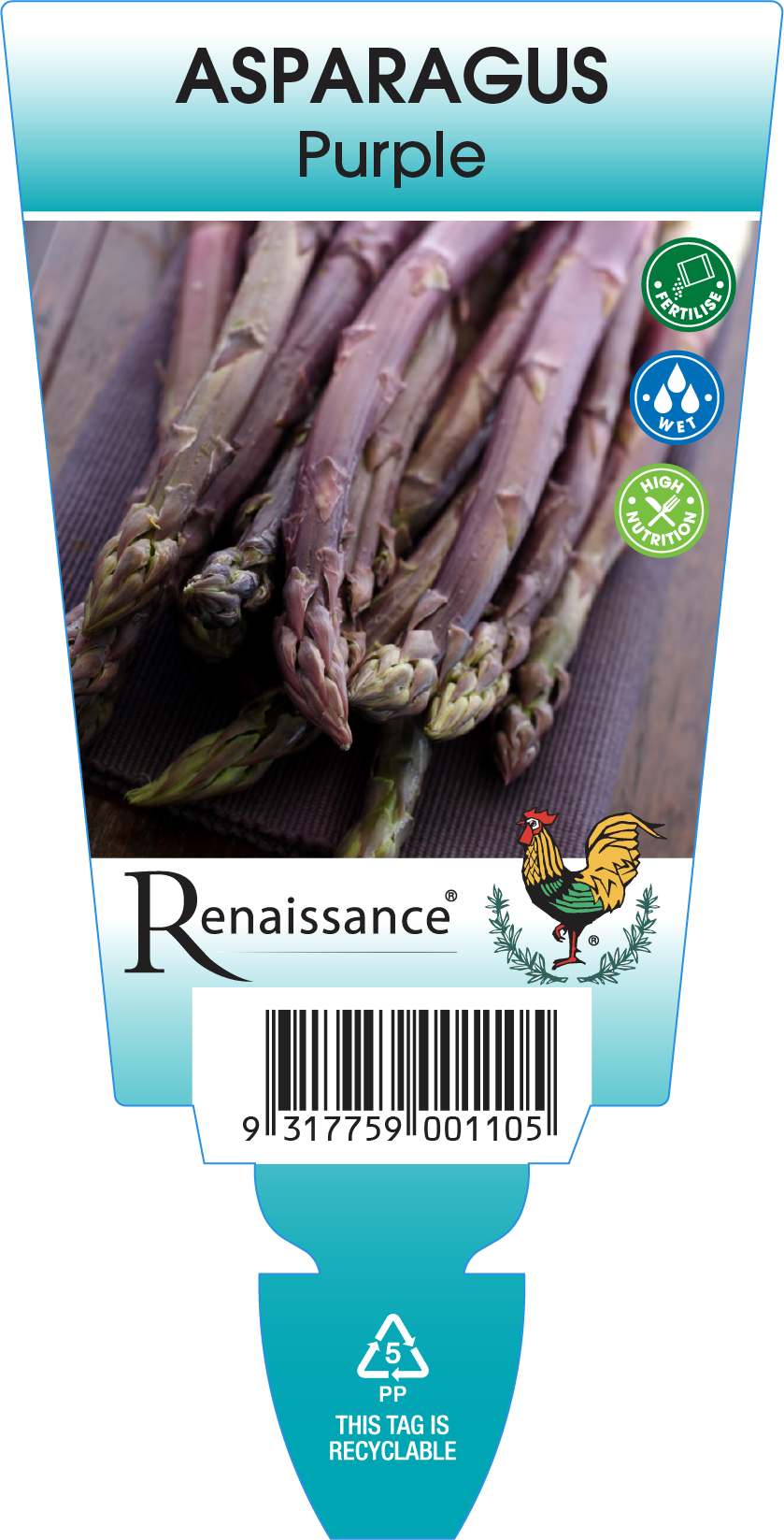 Deep maroon/purple spears and tips, creamy flesh. Fast growing and extremely hardy, high yielding. 18 months from planting till the first usable harvest. Produces a crisp, tender, sweeter thick spear.