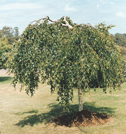A pendulous tree with fine whip-like young branches. The lovely white, peeling bark and bright green leaves make this a splendid feature tree.