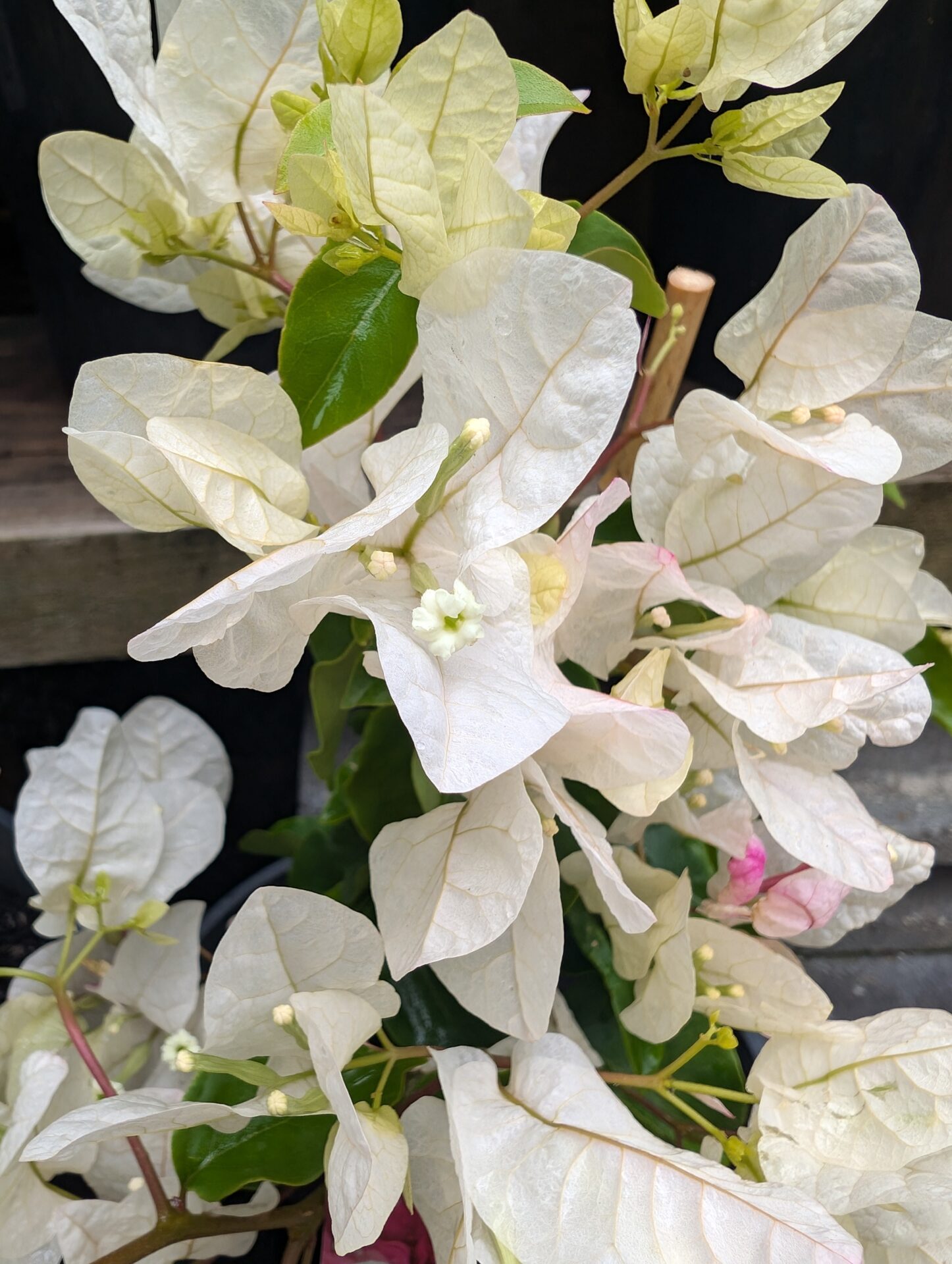 FLOWER: White with some purple/pink flowers, spring to autumn