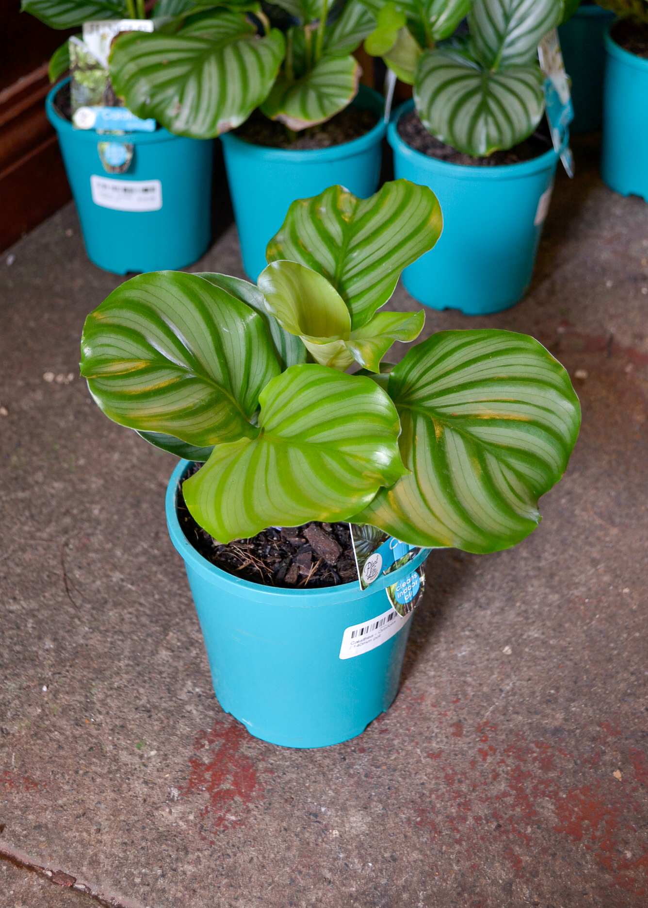 This Calathea appreciates a warm, slightly humid environment, bright, indirect light, and moderate watering – it does not like to dry out. Keep indoors or in a protected, shaded patio or garden position.