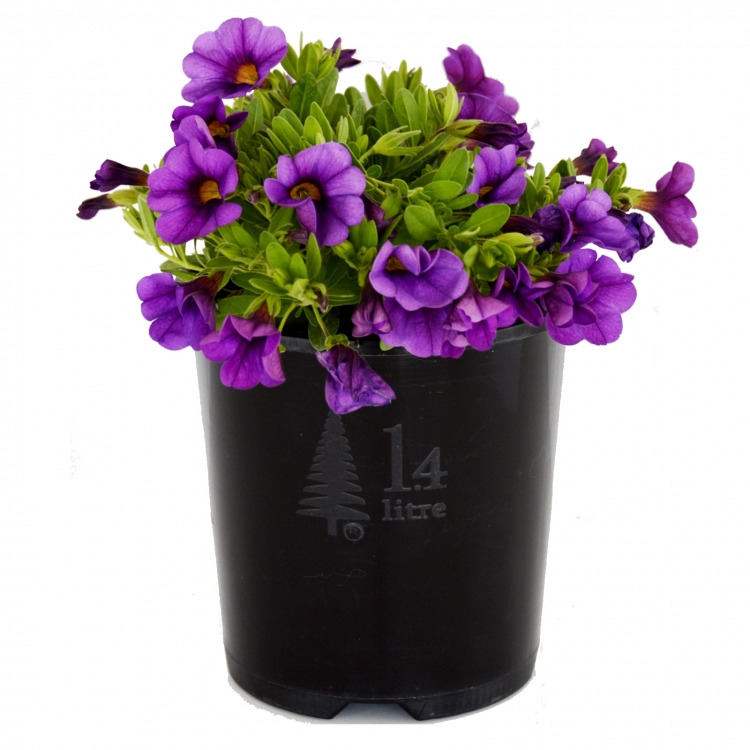 Calibrachoas are commanly refered to as mini petunias or perennial petunias due the the similarities of the flowers. This attractive purple flowering calibrachoa grows with a mounding or trailing habit and is suitable for use in the garden, pots or hanging baskets.