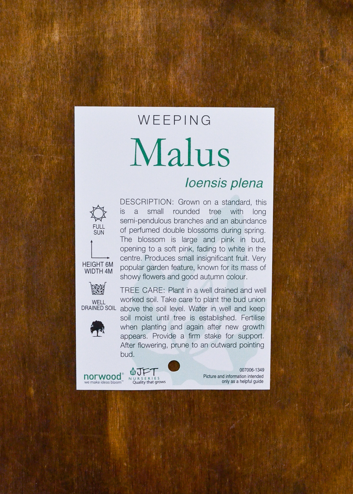 Malus ioensis “Plena” – Grafted onto a 1.8m standard