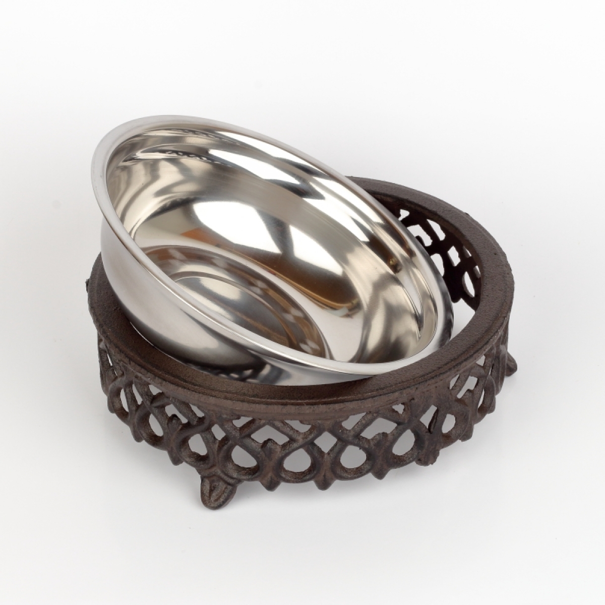 Have your beloved furry friends eat in style with these solid and ornate cast iron pet bowls.