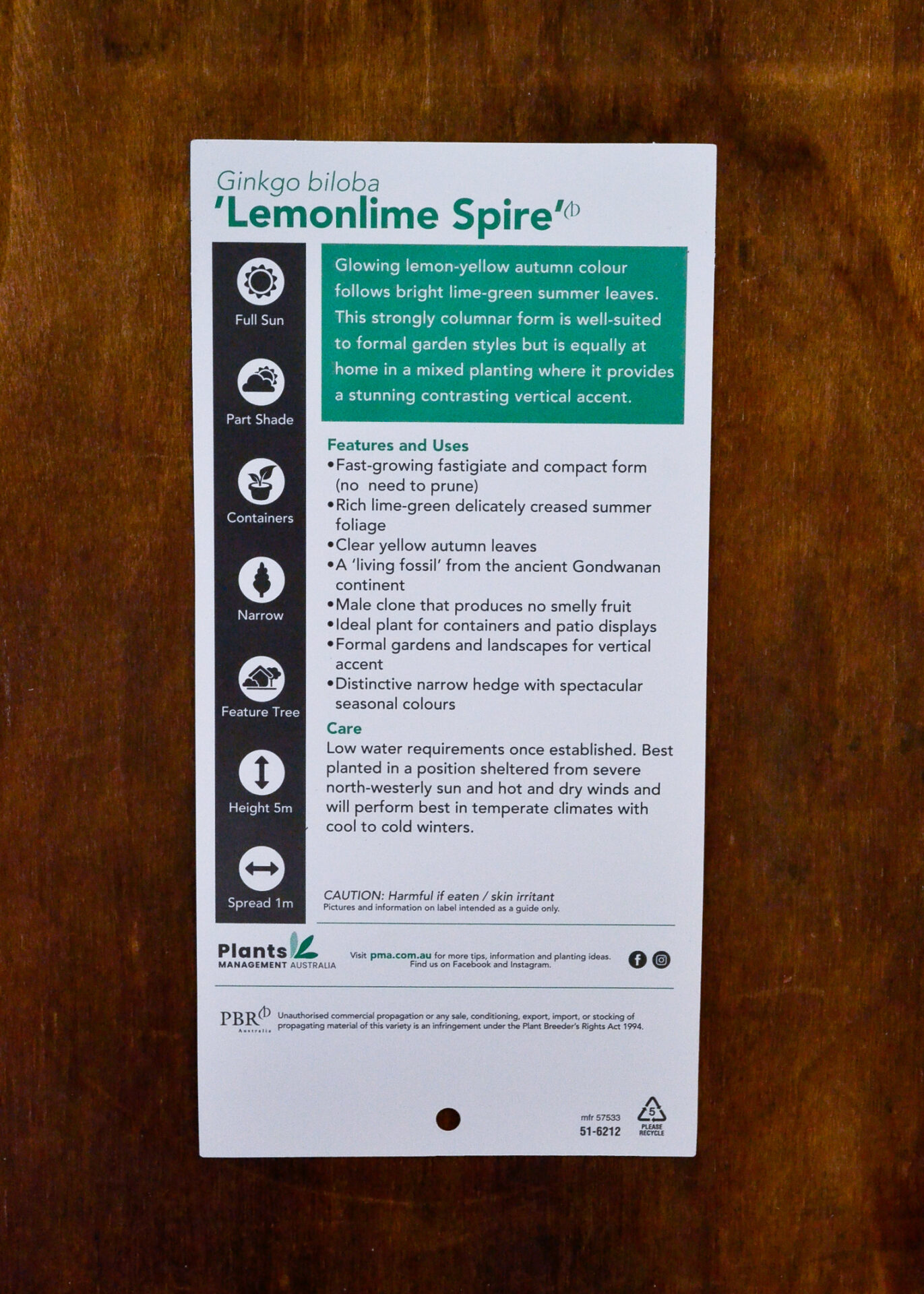 An upright, (relatively) fast growing Ginkgo, with lime coloured leaves in summer and bright yellow tones in autumn.ย ย