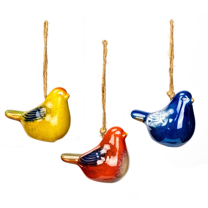 Plump, rounded ceramic bird to place in pot plants, garden beds or indoors.