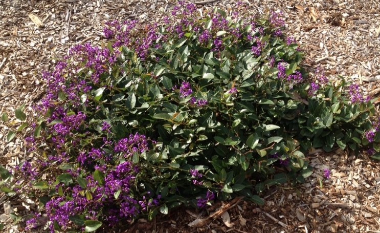 ‘Sea of Purple’ is an extremely tough, vigorous, native groundcover growing to 30cm tall and up to 3m wide. Flowers are produced in winter and spring and will attract native butterflies, birds and bees to the garden. Leaves are dark green and eucalypt-like. It is great for mass plantings in native gardens and performs well in containers and hanging basket. Trim the plant if tendrils begin to stray into other plants or onto areas it is not desired.