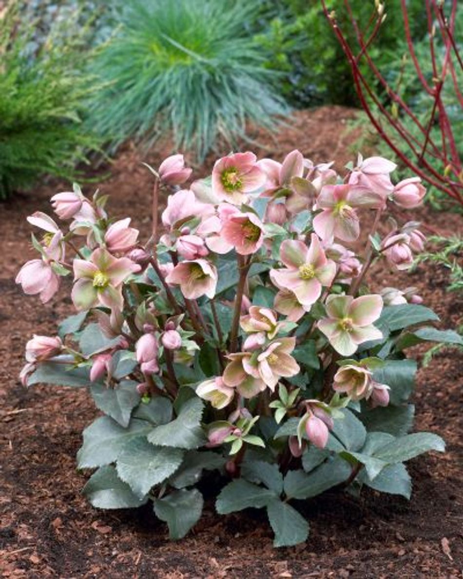 A fantastic, winter flowering perennial with two toned pink flowers that fade to a red with age. It has large leaves and can grow to 50cm tall and 60cm wide.ย