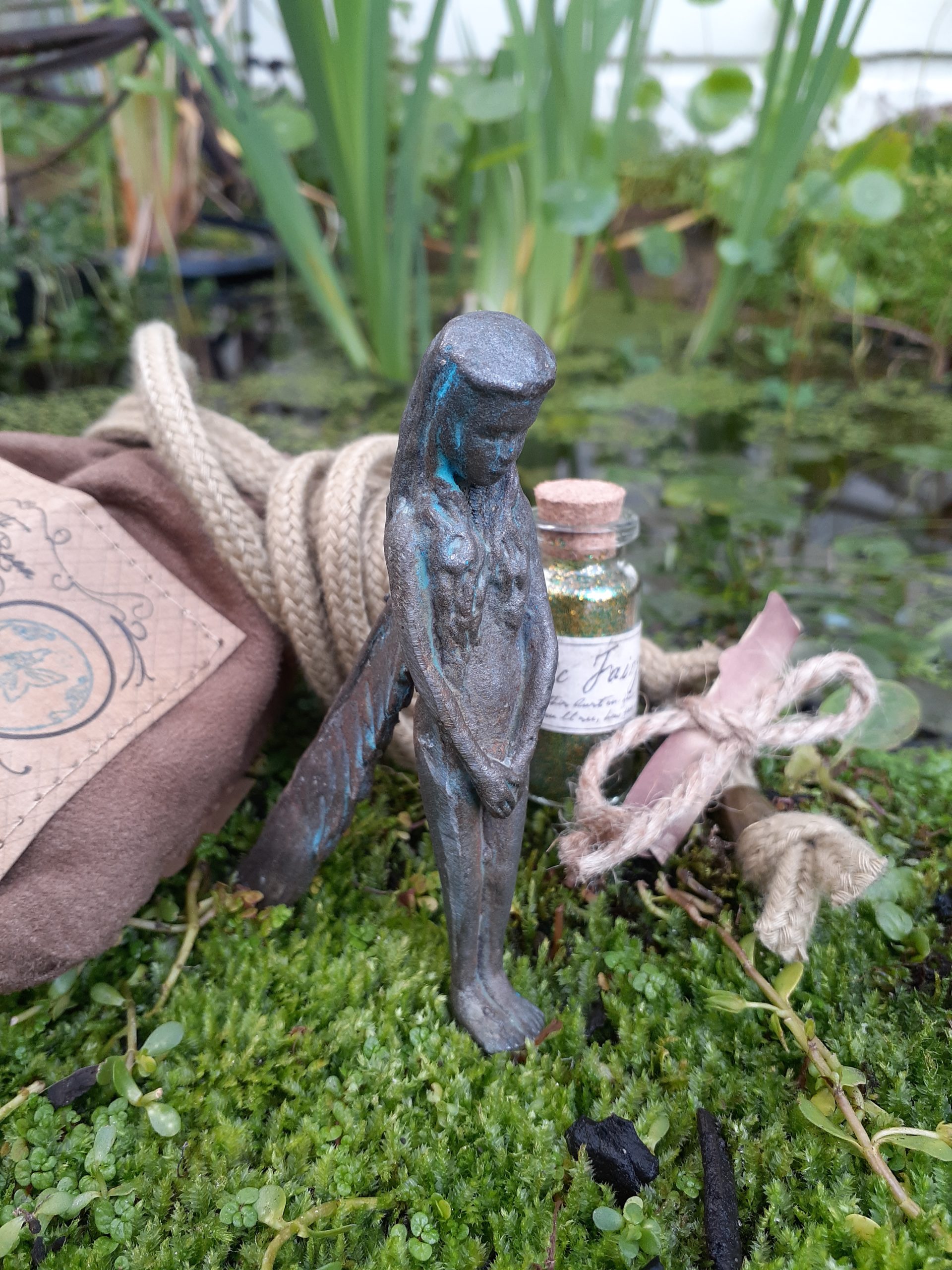 Each Iron Fairy comes in a soft leather pouch with a scroll about their identity and a glass jar of fairy dust.