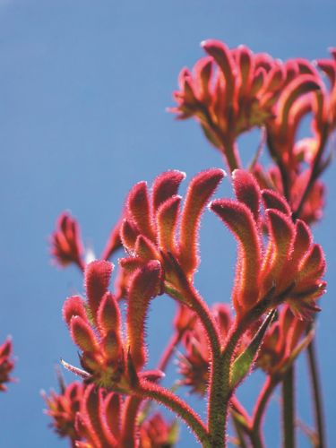 Masses of orange/burgundy Kangaroo Paw flowers appear over green strappy foliage. Flowering period is from spring to summer. Plant in well drained soil in a sunny position. Feed with slow release fertilizer in spring and autumn. Some watering during dry periods will keep the plant looking it’s best.