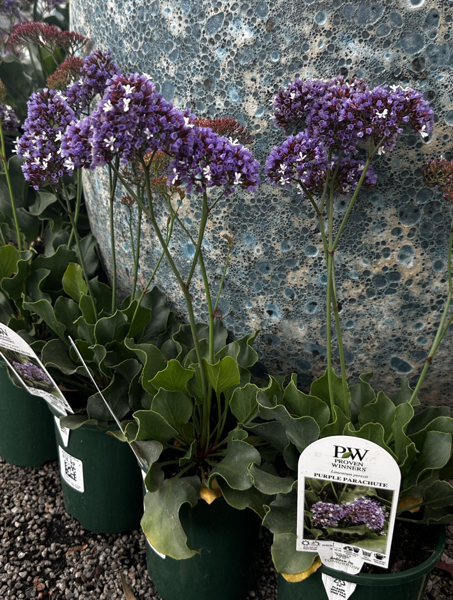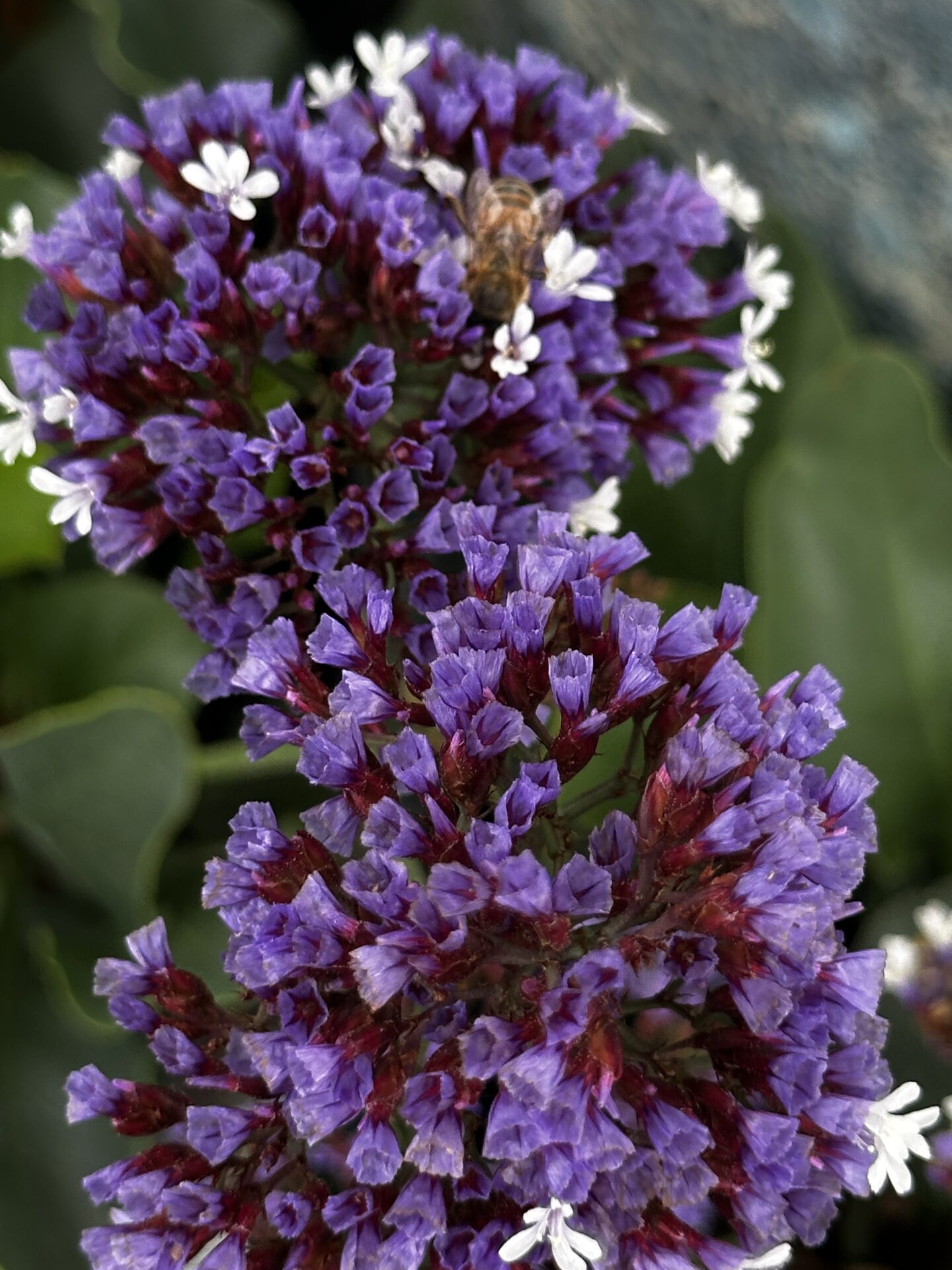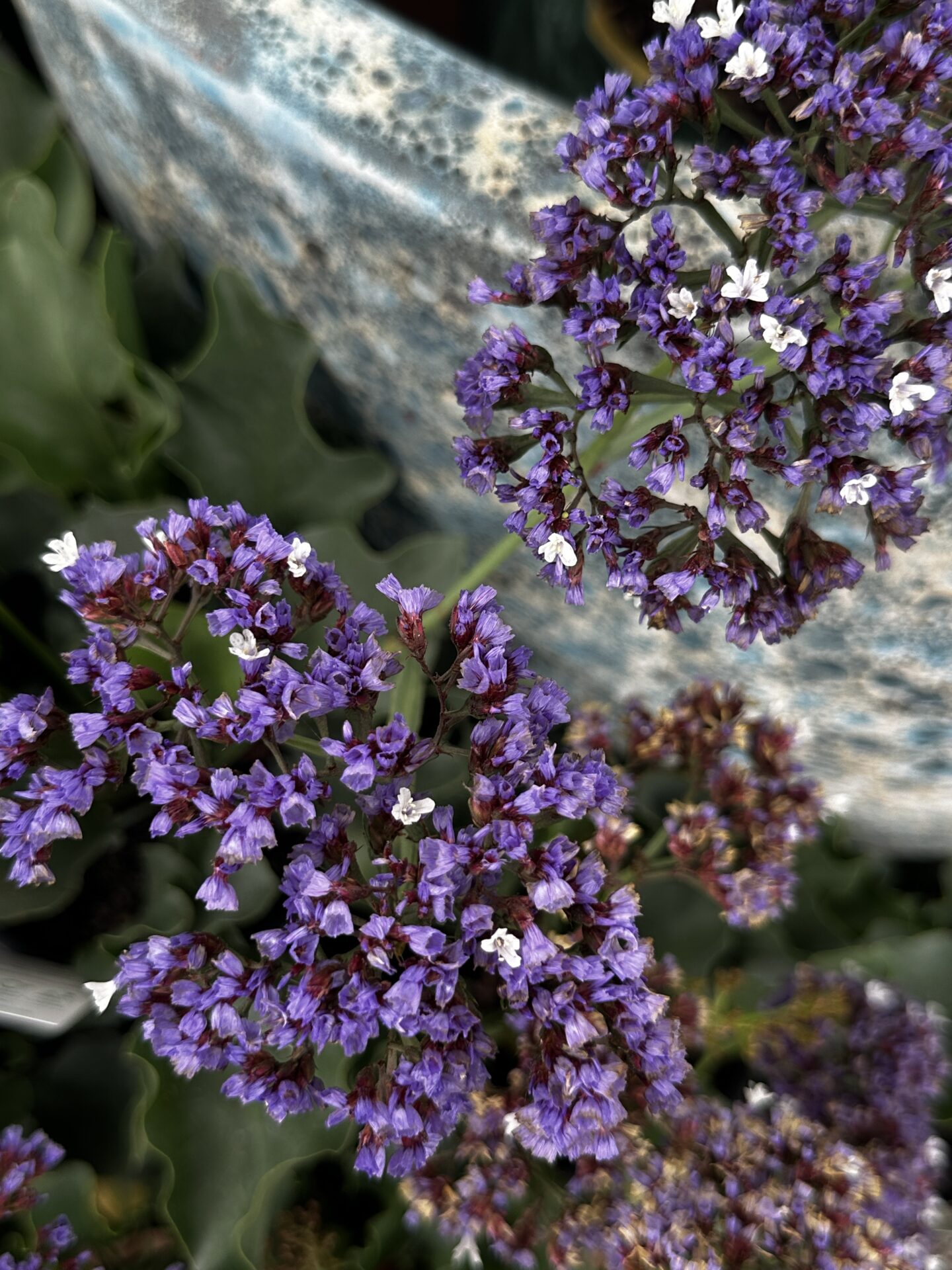 Flower: The flowers are similar to florist’s statice. They have purple-blueclusters of small blooms, held on stiff stems, and appear throughout the year, good for drying.