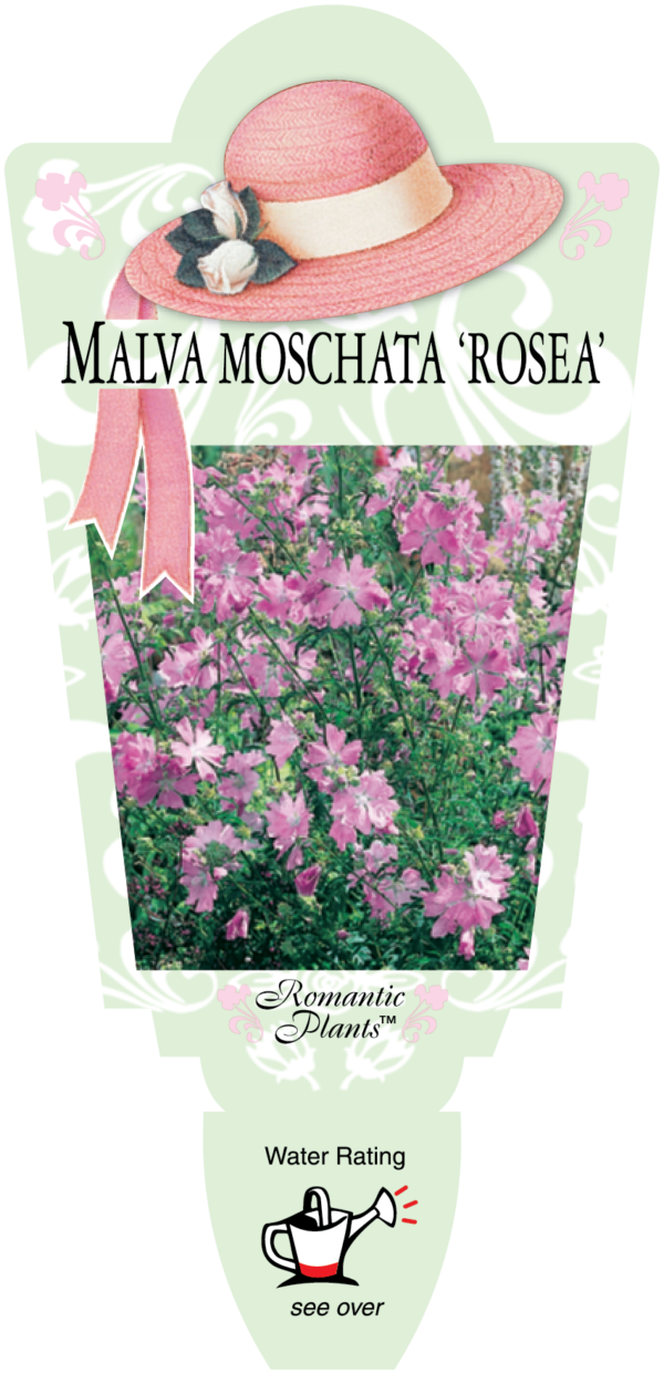 A bushy plant, with slightly musk scented leaves, which is covered in hollyhock-like pink flowers.
