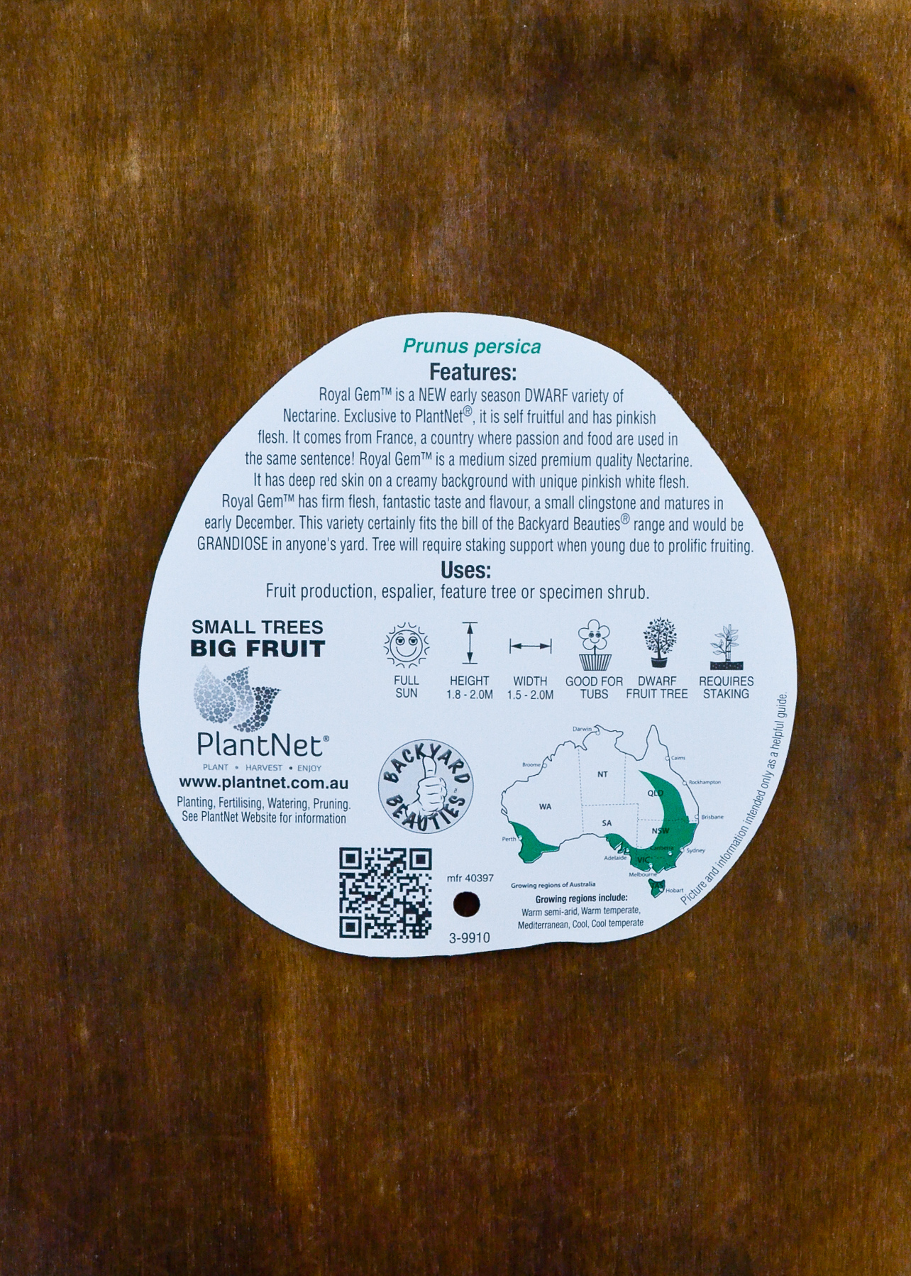 Royal Gem™ is a dwarf tree that produces full sized fruit. Great for the garden or large pots.