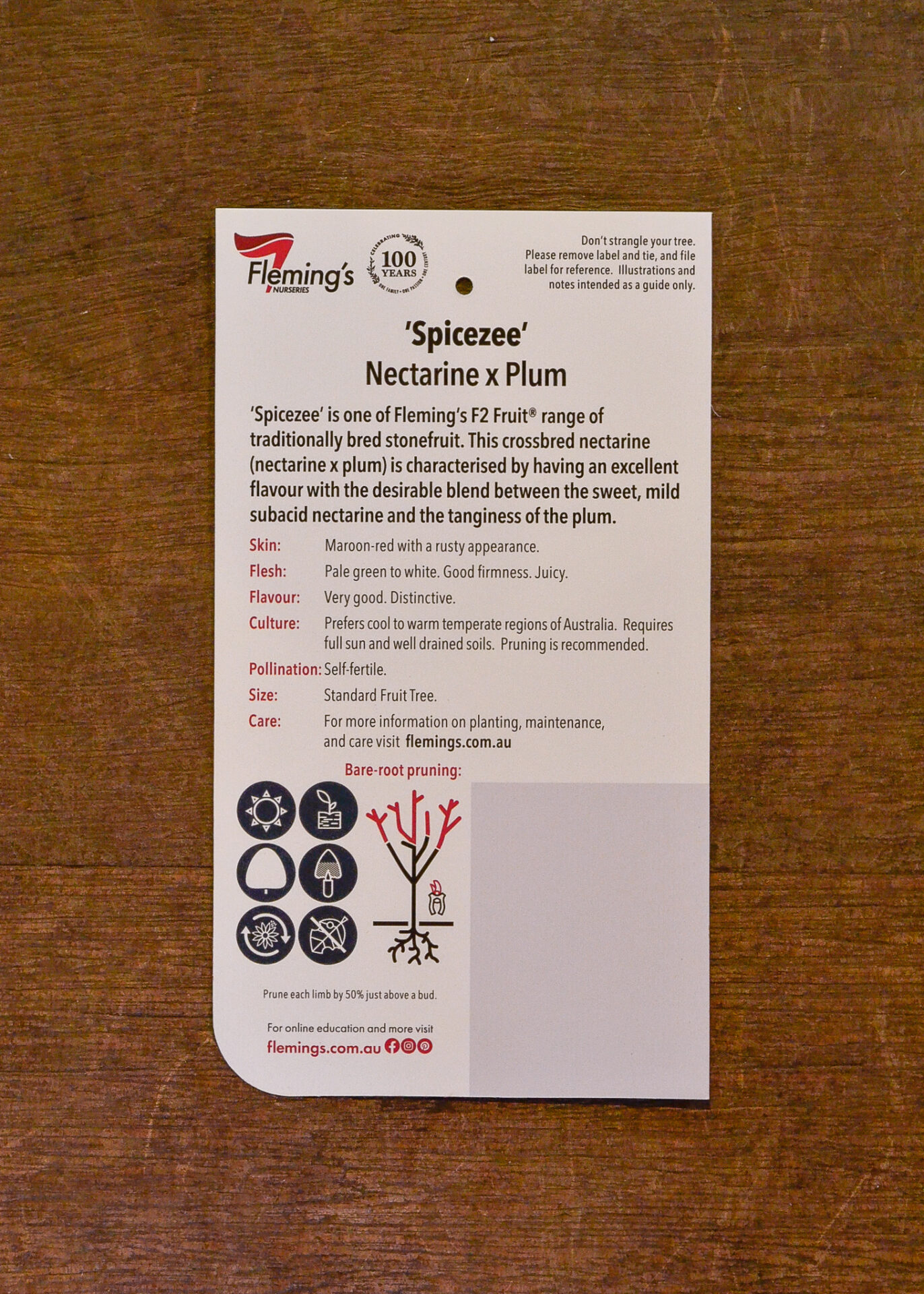 Spicezee is one of Flemings Nurseries F2 range of traditionally bred stone fruit. An excellent flavour blend of a nectarine and plum. Plant in full sun.