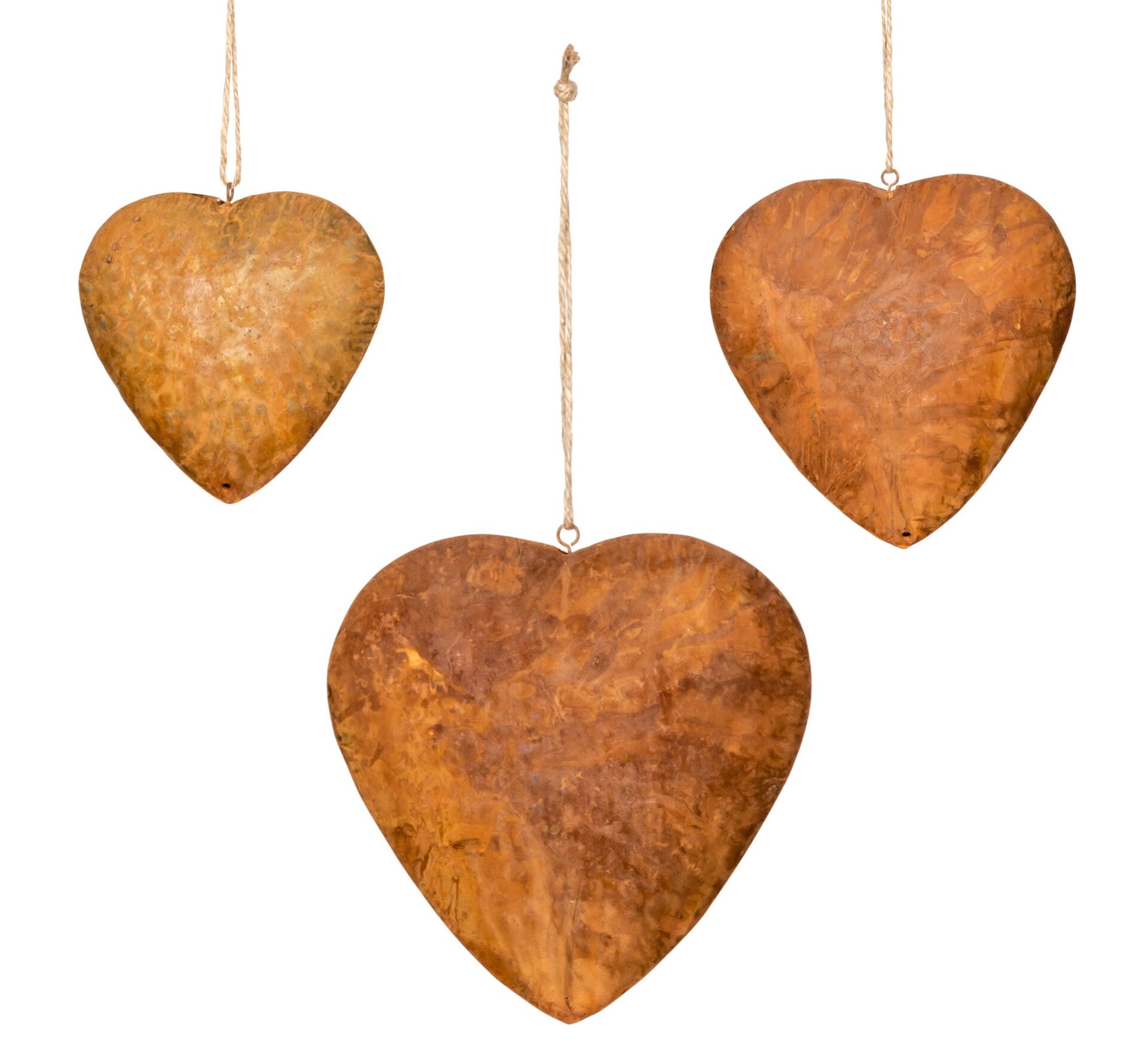 Made from pre rusted metal with twine string to hang these sweet hearts are perfect to hang in your patio.