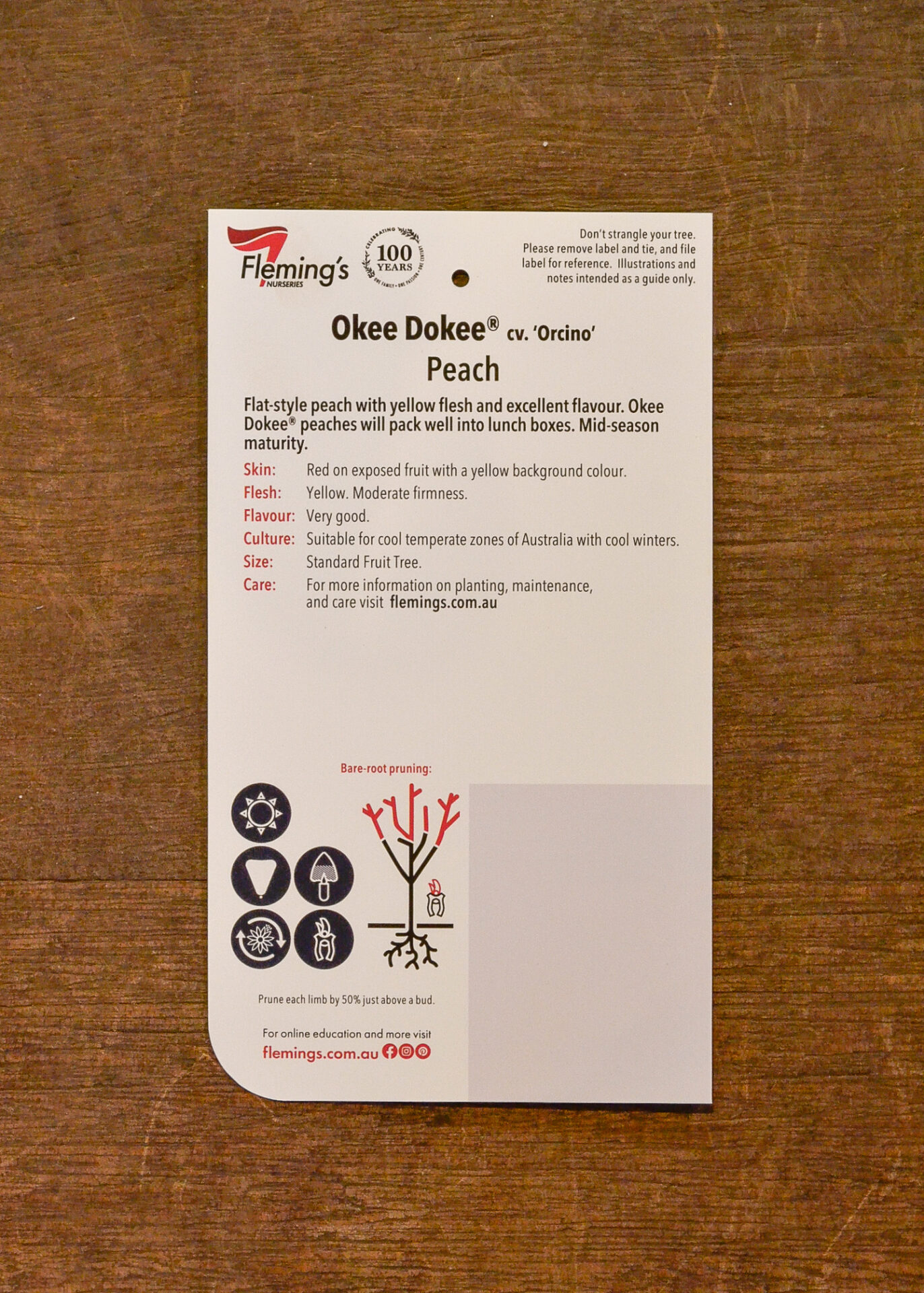 A unique flat-styled peach with yellow fleshed and excellent flavour. Matures mid-season.