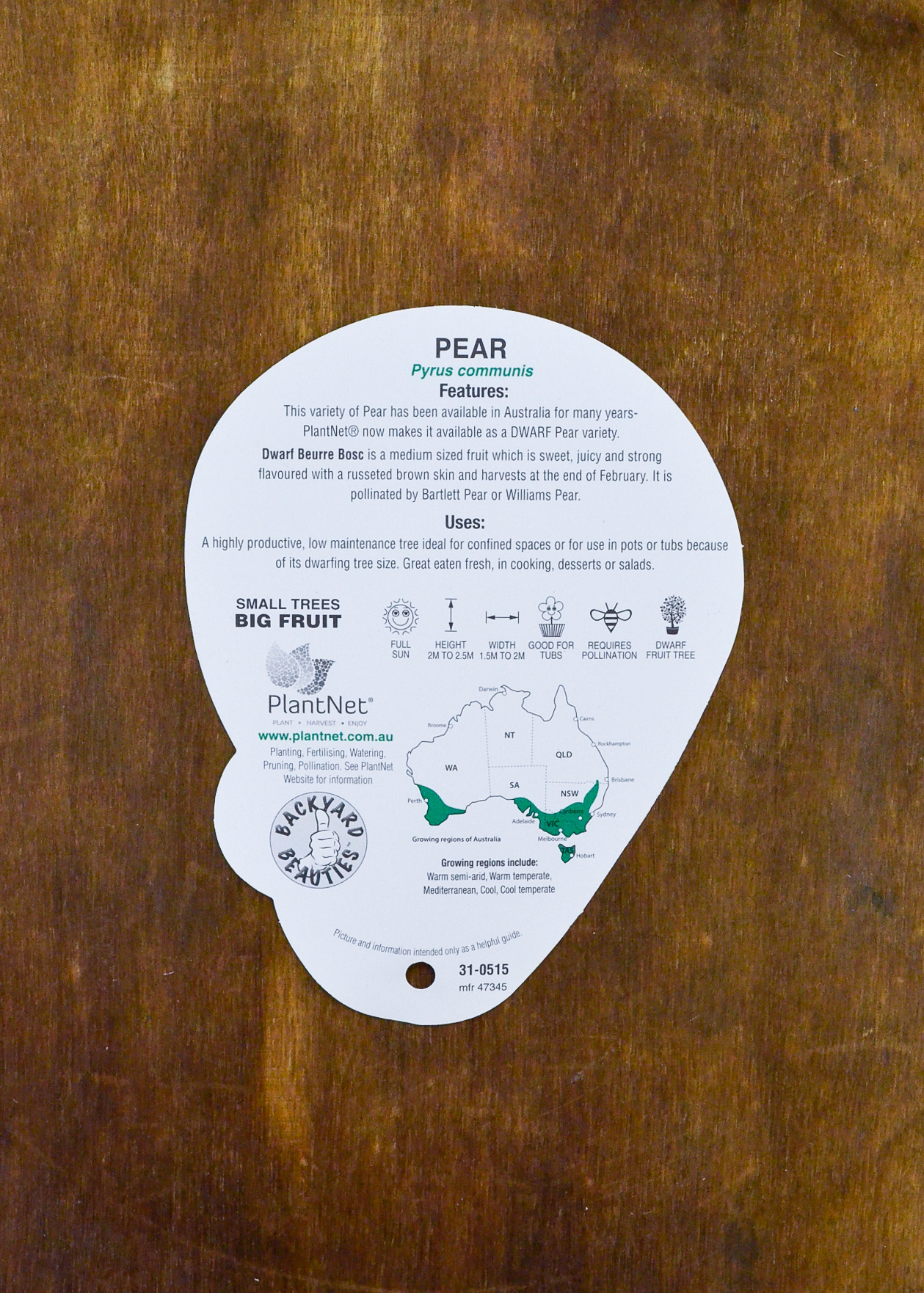 Pollination:ย Requires cross-pollination. Pollinators: “Bartlett”, “Williams”, Nashi “20th Century” (“Nijiseiki”) “Josephine”