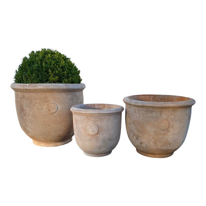 The Frostproof Temperate pots with their rustic finish and curved designs are sure to be a standout feature in any garden or patio. Designed in the UK and bearing the seal of the Royal Botanic Gardens, Kew, this hand crafted range is of the highest standard. Entirely handcrafted by artisans, finished in a rustic antique effect to give a beautiful aged look, these Kew Frostproof pots are suitable for outdoor use all year round. The unique shapes and colours of these pots make them the perfect showpiece outside or under the patio and are perfect for creating an English garden retreat.