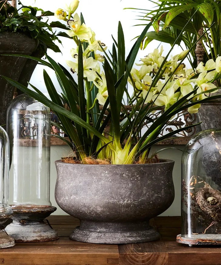 Low grey planter, specifically designed for orchids, this stunning pot is lightweight and easy to maneuver. Suitable for indoor or outdoor use.