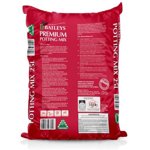 Baileys Premium Potting mix is a quality growing media, designed to assist plant establishment and ensure vigorous and healthy growth in pots and containers. This professional blend of ingredients has been perfected over many years to deliver the optimal growing environment for a wide variety of plants.