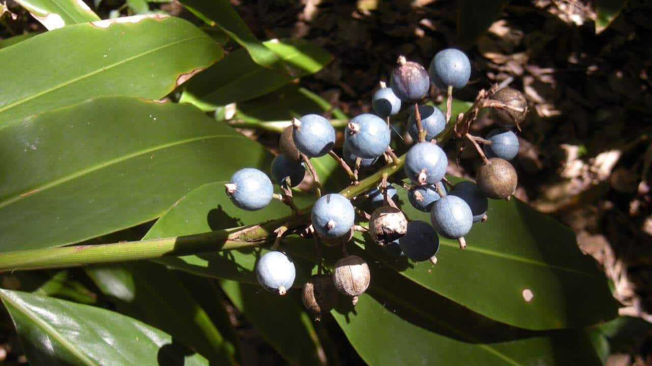 Native to the rainforest understoreys of the Atherton Tablelands, this native ginger may be used for both its spicy ginger rhizome, and its blue berries, which are both edible. The berries have a pleasant lemony-ginger flavour, however the seeds should not be eaten. To harvest the root, simply dig up, and berries may be picked and eaten straight off the stem.