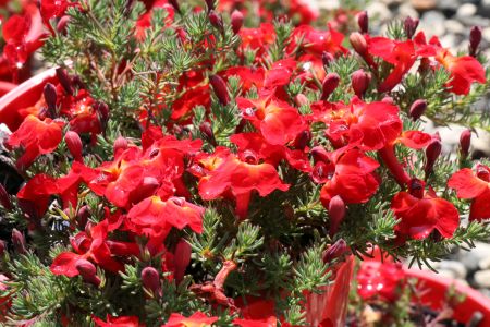 A lovely mounding ground cover with a dainty appearance growing to 50cm tall and 1m wide. It has stunning red flowers in spring and summer making it great for cottage gardens, pots and borders. It grows best in a full sun position with well draining soils but does require regular watering as it likes to stay on the moist side.