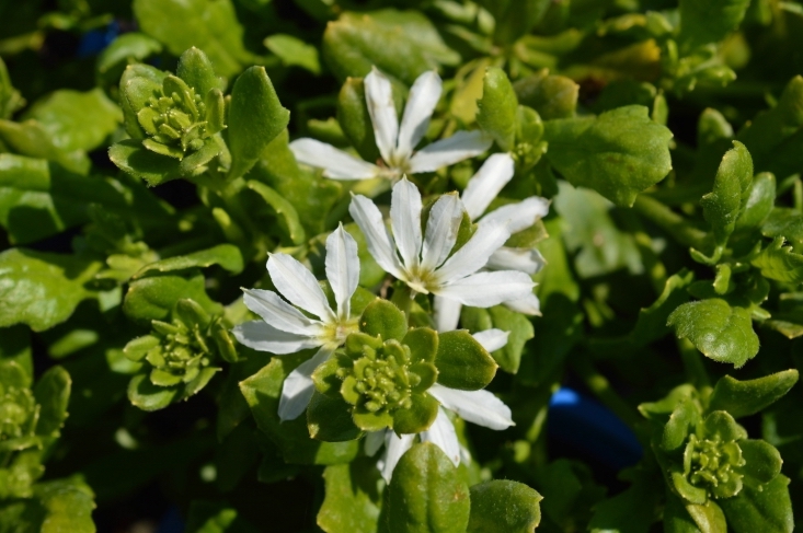 Scaevola aemula ‘White’ is a native ground cover with fan shaped white flowers covering the plant from Spring through Summer. They are vigorous and grow to 50cm high and 80cm wide but are manageable and will not grow wild throughout the garden. They are great for rockeries, cottage gardens, native gardens and also make a lovely display in pots. To keep them looking their best regularly prune leggy stems and spent flowers. For maximum flowering plant in full sun and in well drained soils. They will appreciate mulching and regular watering whilst establishing.