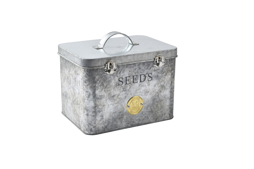 This beautifully designed seed organiser is perfect for collecting, storing and organising seed packets. The metal handle in the lid makes carrying easy, with two strong metal clasps to hold the hinged lid securely shut.