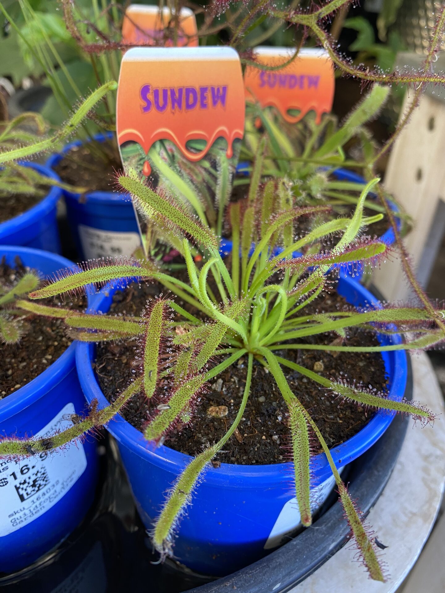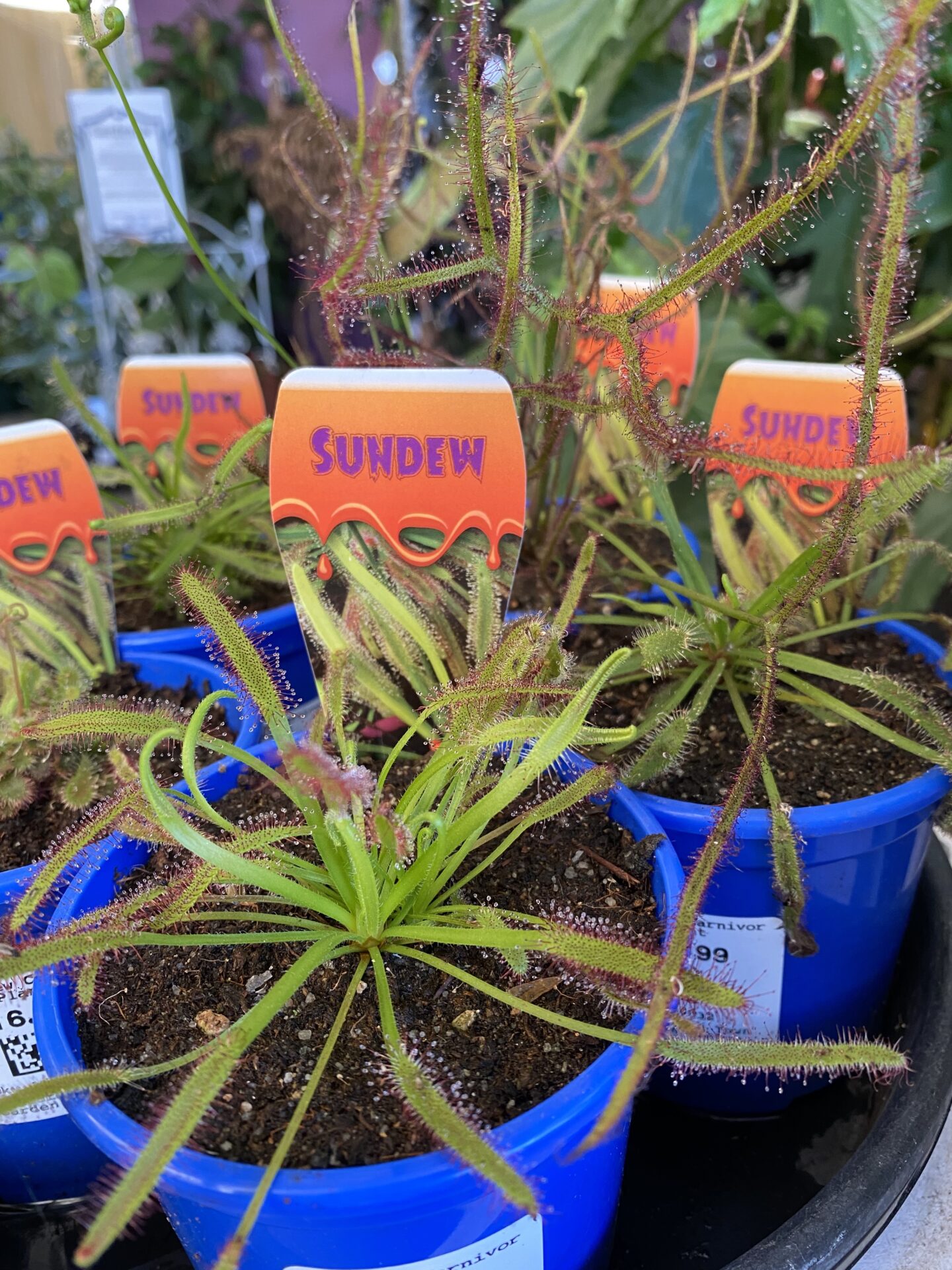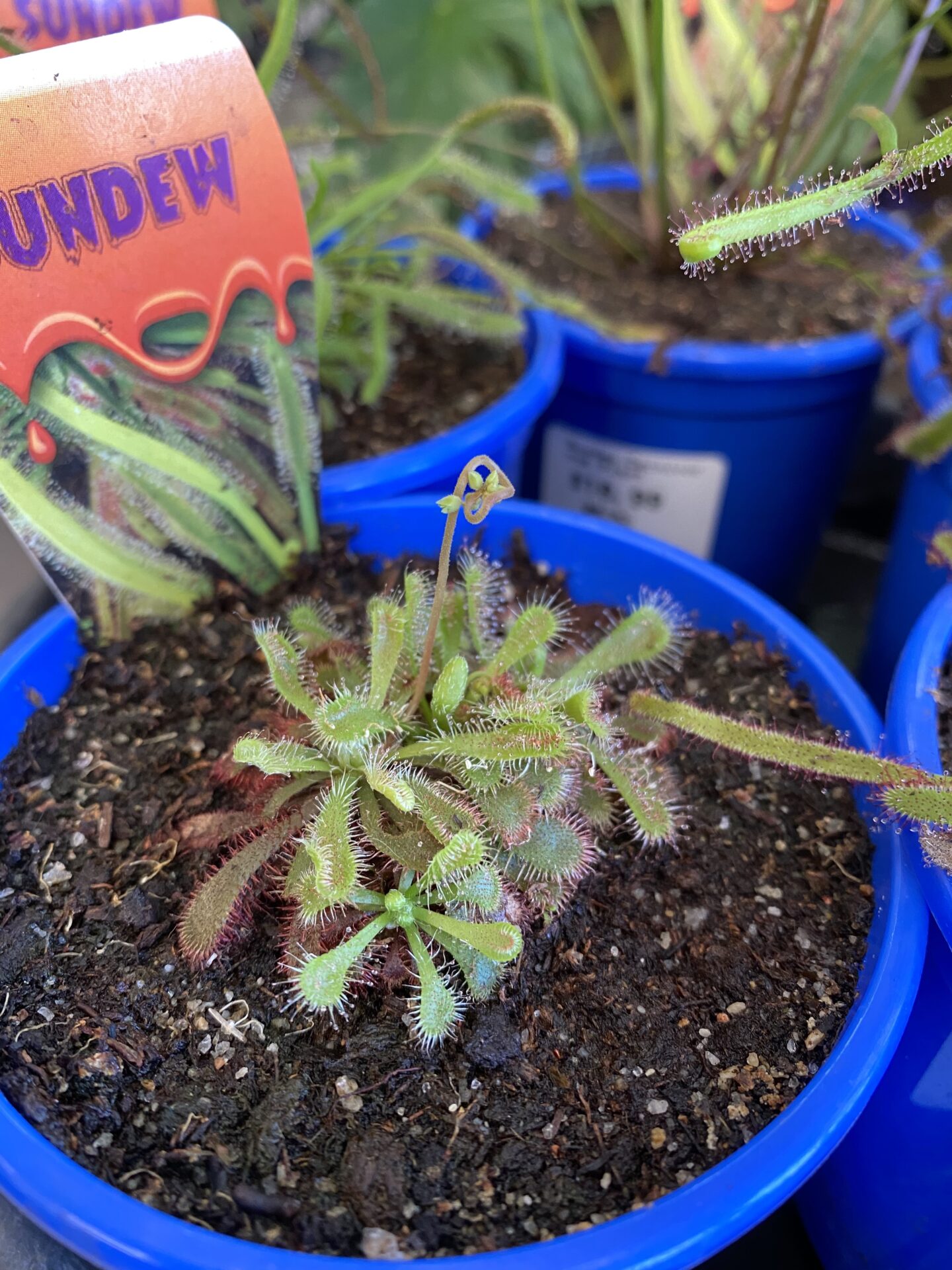 Drosera are covered in sticky nectar, designed for luring, trapping and consuming unsuspecting insects!