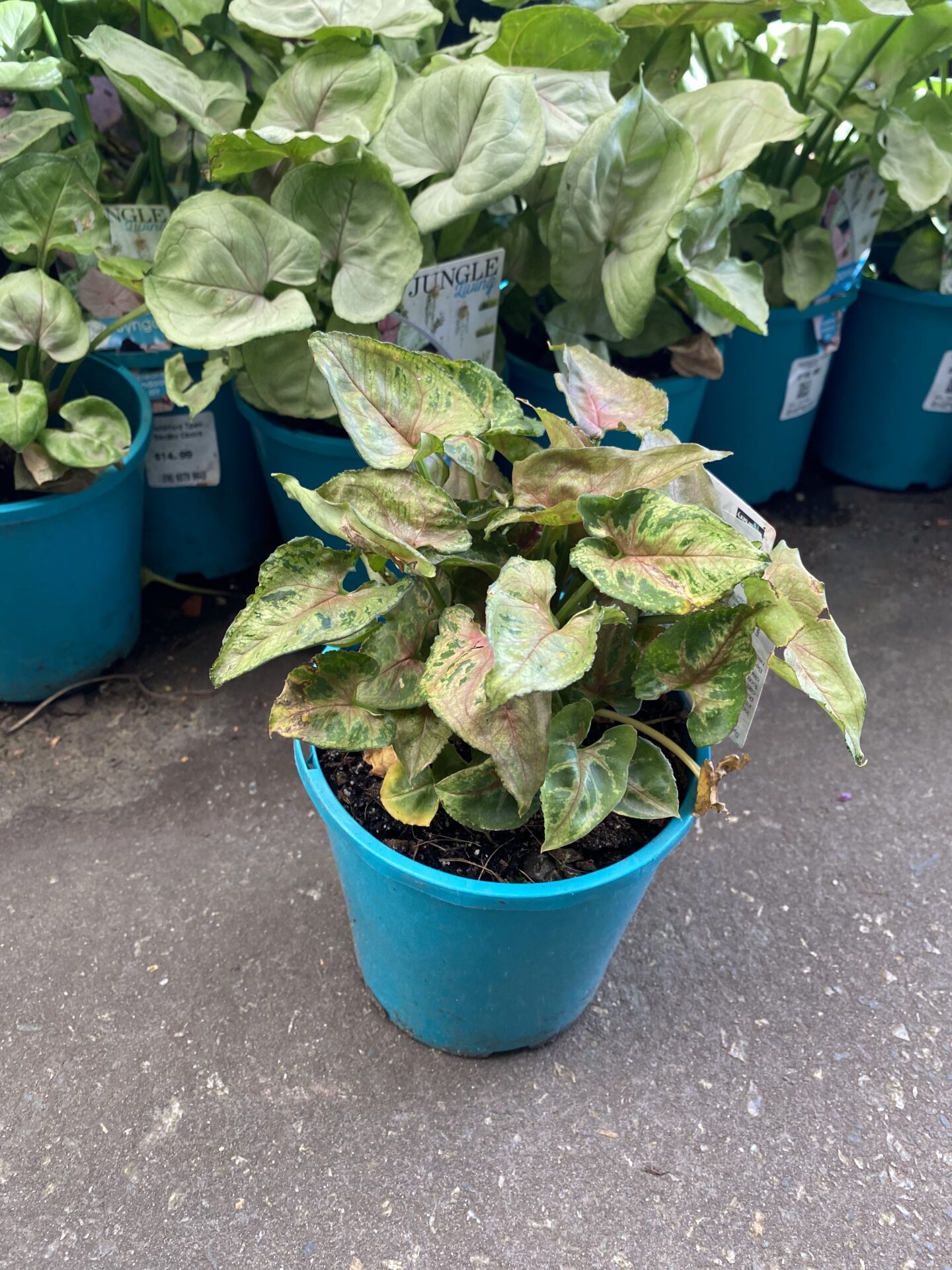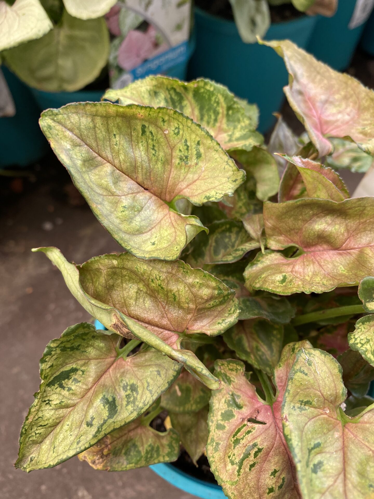 Dwarf Princess has stunning foliage with pink veins and yellow and green mottled leaves. It can grow to 35cm tall and will also spread horizontally which can make for a lovely display in a pot as it starts to spill over the edge.ย It can be grown in a bright indoor or patio position or can be used outdoors as understory or border plant in a shaded garden. If planting into a pot use premium potting mix in a pot with good drainage and only water when the soil has dried out.