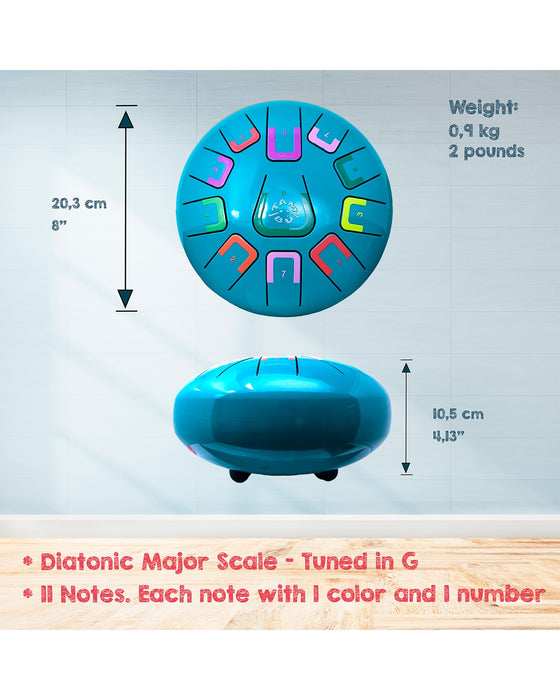 The innovative tongue drum design means anyone can start playing as soon as they pick up the drumsticks. Follow the colours and numbers on the music sheets supplied to produce melodic tunes. It is ideal for beginners of any age.