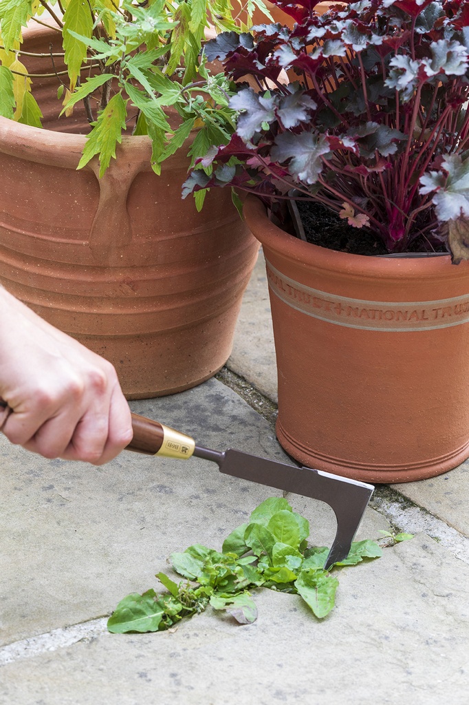 This weeding tool has been designed specifically to keep patios and paving looking neat and tidy. Its slimline head incorporates two sharpened blades and a fine hook, to cater for all weeding approaches! It’s ideal for excavating weeds, moss, and other debris from the fine gaps between paving and from any other nooks and crannies – without using chemicals. The strong high-carbon steel body has a textured powder coating in a distinctive antique bronze colour to protect from corrosion.