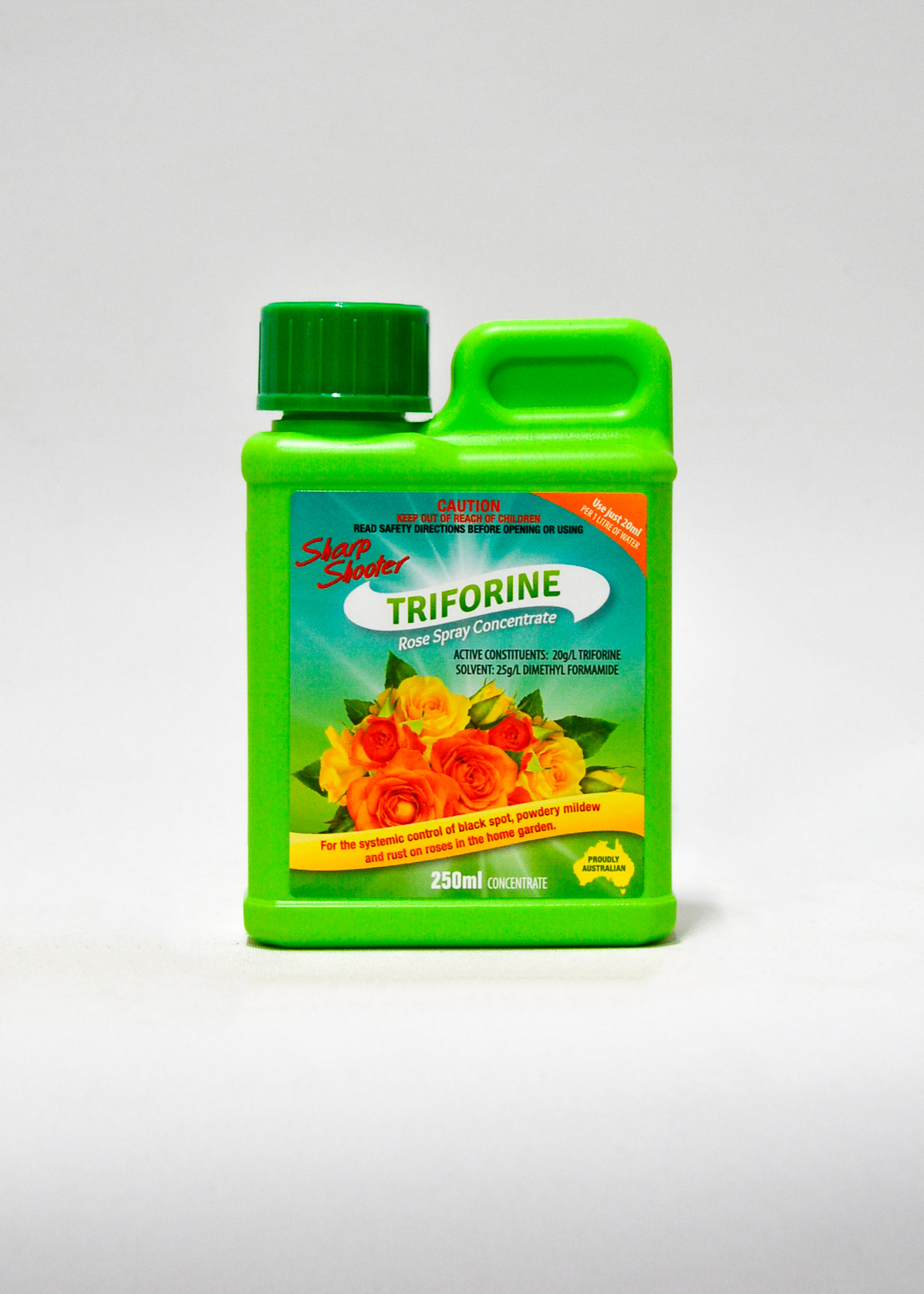Controls black spot, powdery mildew and rust on roses. Use after pruning to protect vulnerable plants and whenever fungus is visible.