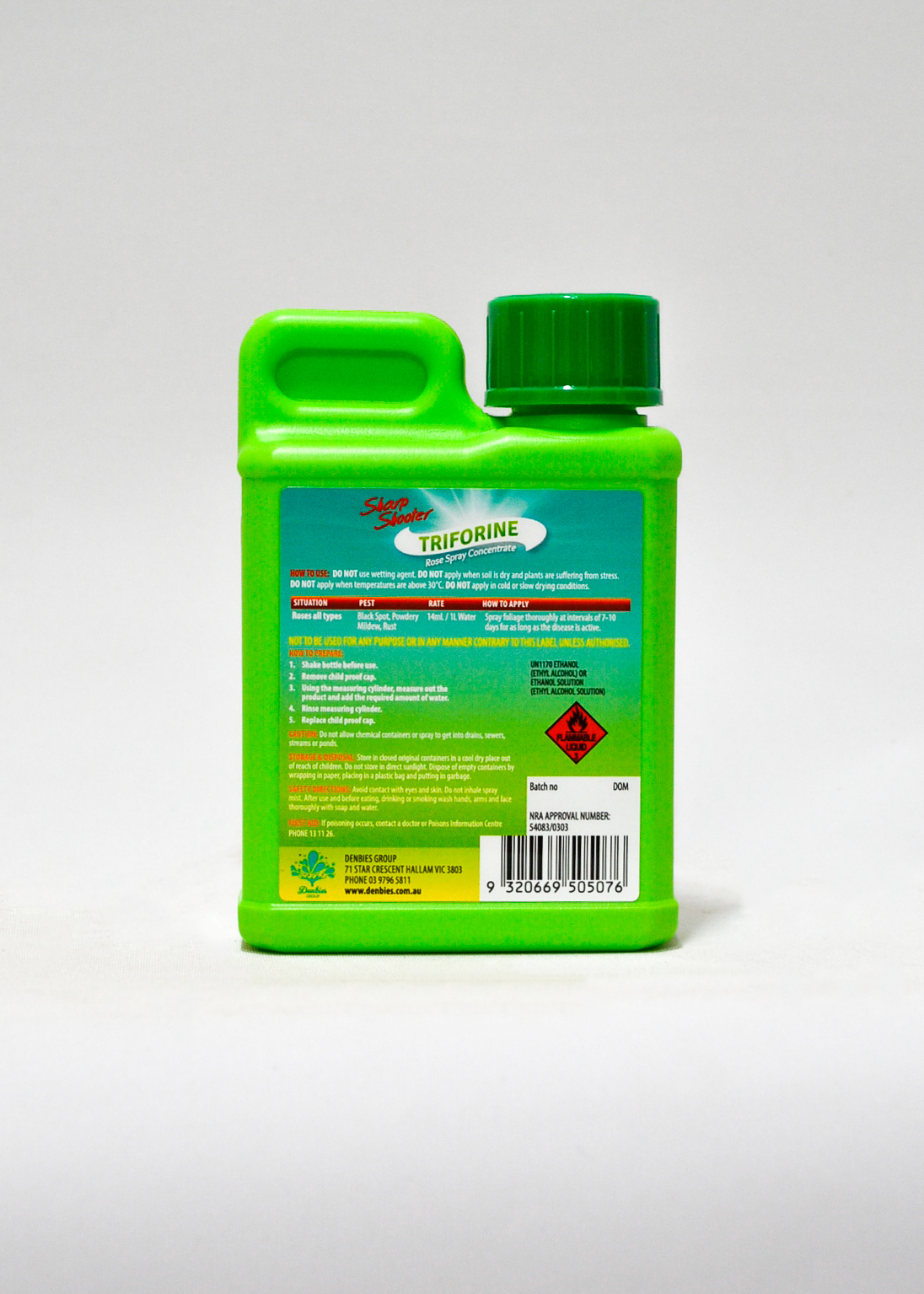 Triforine is a systemic fungicide which enters the sap system of the plant to protect from and cure fungal diseases.