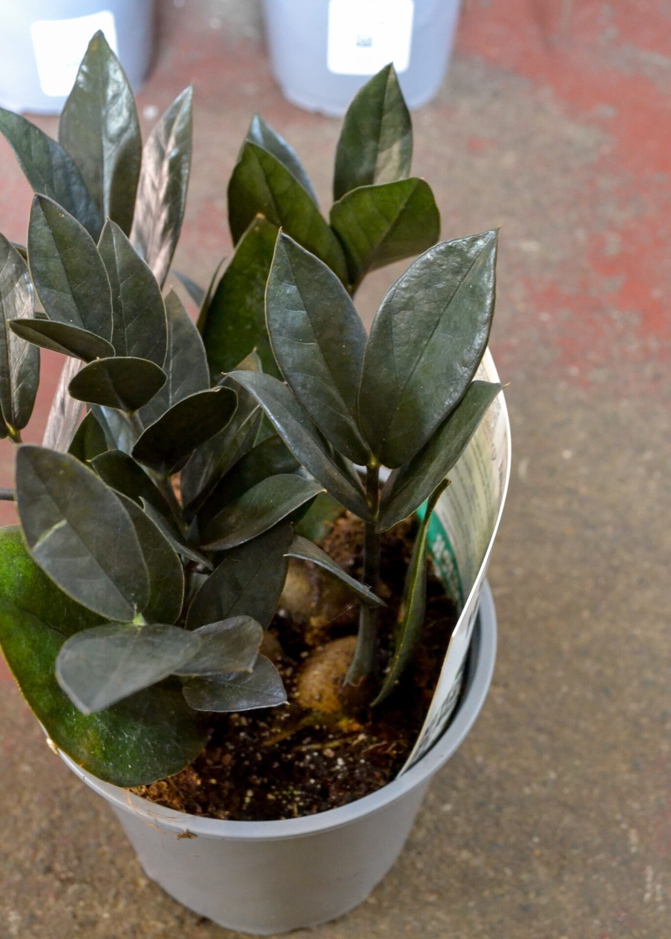 Zanzibar Gem (Zamioculcas zamifolia) is a plant that thrives on neglect. A striking feature plant with shiny dark green leaves on upright stems, it tolerates very low light conditions inside the house. It needs water with fertiliser only once a month in summer and not at all in winter.