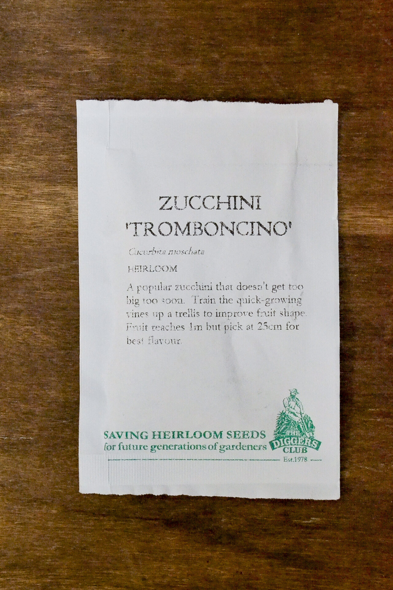 The zucchini with outstanding flavour that doesn’t get too big too soon. Train the quick growing vine tendrils up a trellis so it hangs straight. Fruit reaches 1m but it is best picked at 25cm long. Huge yields, fruits for months.